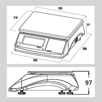 * Function keys: Tare,Units,Net/Gross,Print,Zero,On,Off